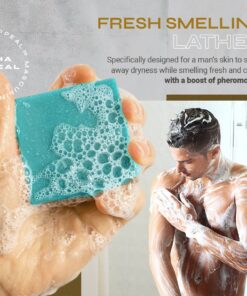 - Gently massage the lather onto your skin, focusing on areas such as your chest, neck, and underarms where pheromones are naturally produced.