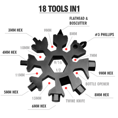 Amenitee 18-in-1 stainless steel snowflakes multi-tool