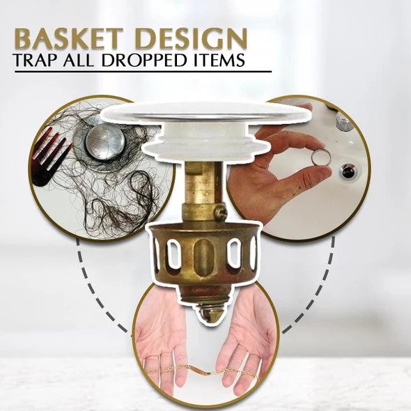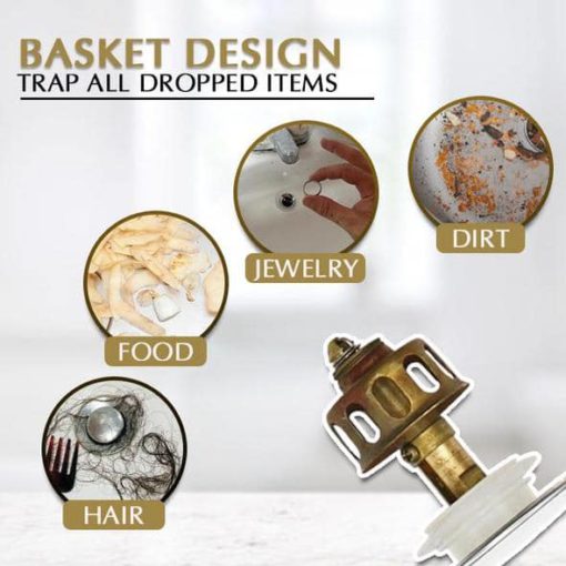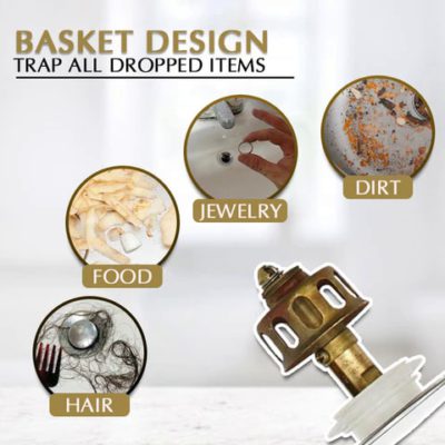 Constructed with a basket strainer underneath, it allows smooth water flow while collecting hair, jewels, accessories and dirt to prevent obstructing the drain & losing your personal items.