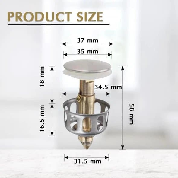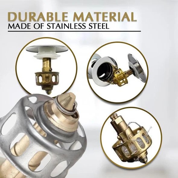 Anti-Clog Pop-up Drain Filter is a multifunctional tool as a stopper & strainer while neatly catching hair, dirt and food particles without stopping the flow of water.