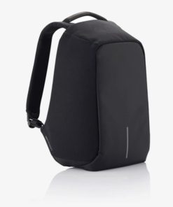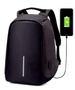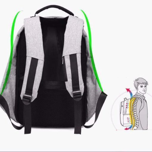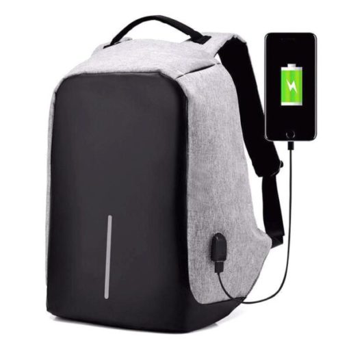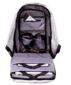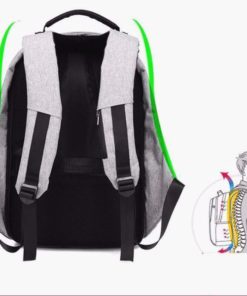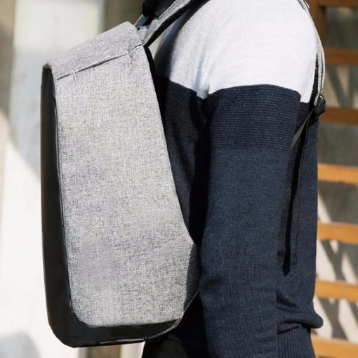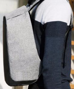 Anti-Theft Backpack has tear-resistant, water-resistant fabric, which holds its shape and has a sleek look, available in gray or black.