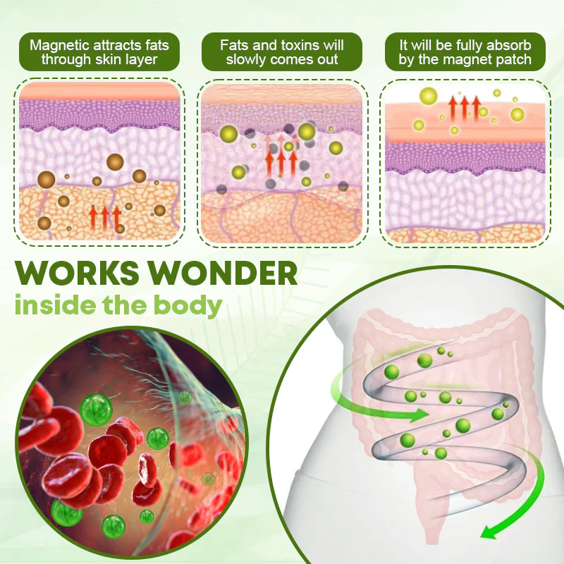 This innovative method allows the patch’s herbal formula to be efficiently absorbed through the skin, reaching the intestine where it helps absorb additional lipids and sugars. By combining magnet therapy with a potent herbal blend, it offers a proactive solution for promoting digestive health and supporting effective weight management.