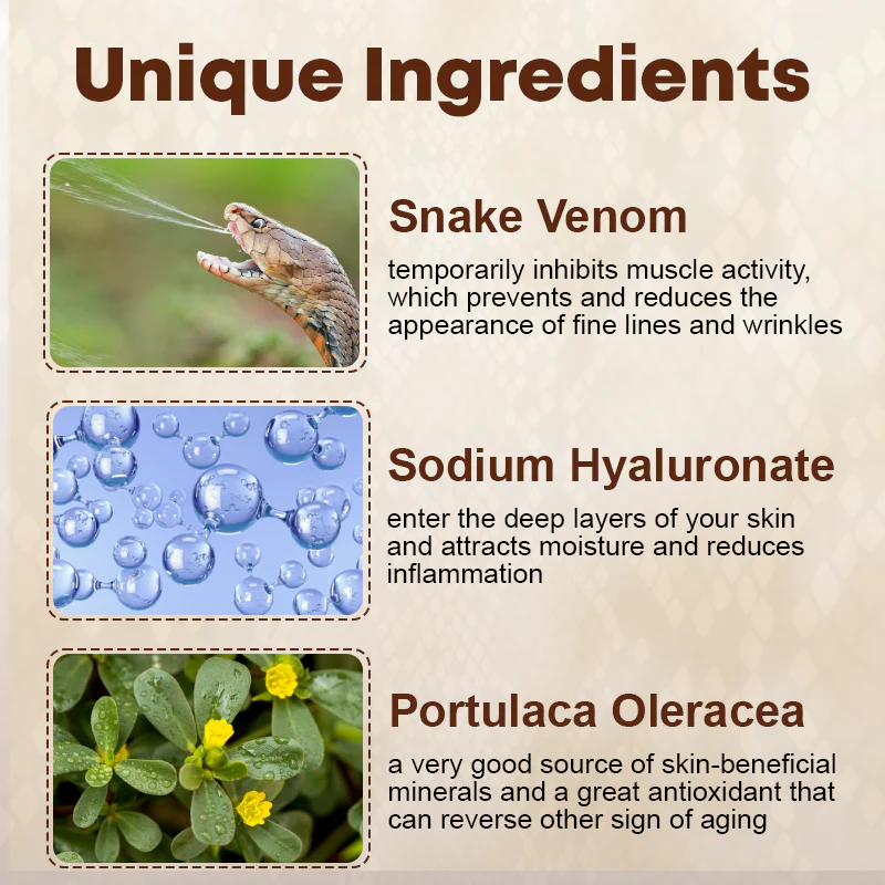 Packed with powerful Snake Venom Peptides, this innovative formula works by paralyzing facial muscles to smooth out existing lines and prevent new ones from forming. Enjoy firmer and more elastic skin as these peptides stimulate collagen production, revealing a rejuvenated and radiant complexion.