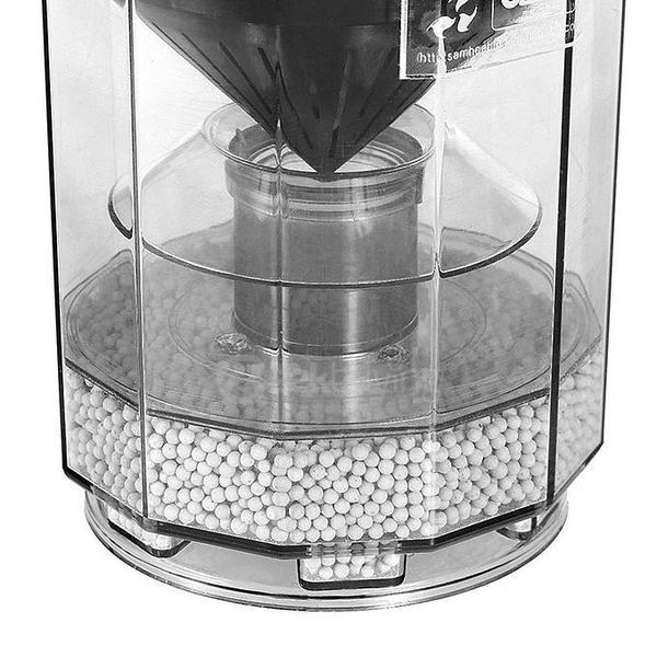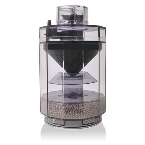 The device has a biological filter ball at the bottom of the cylinder which boosts the growth of nitrifying bacteria, which is required for the nitrogen cycle.