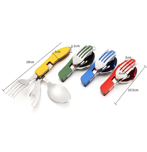 Made of high quality stainless steel, this ingenious utensil works as knife, spoon, fork and bottle opener. With its handy and ergonomic design, it is suitable for outdoor camping, picnics and the like, plus it’s rust and stain proof for easy cleaning.