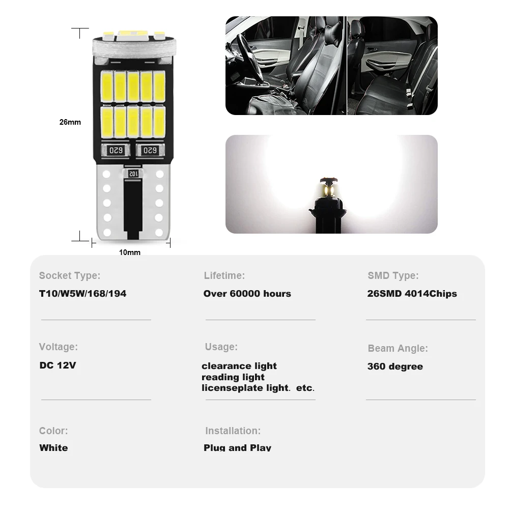 6/10/20x T10 Automotive LED Bulbs