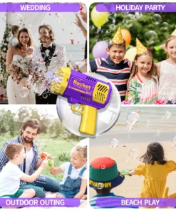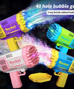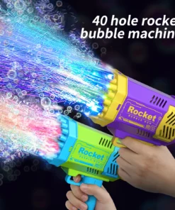 One Pack Of Children’s 40 Holes Rocket Launcher Handheld Portable Electric Automatic Bubble Gun LED Light For Boys And Girls