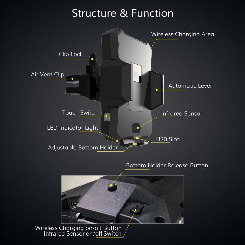 Automatic Wireless Car Mount Car Charger has the following product features: