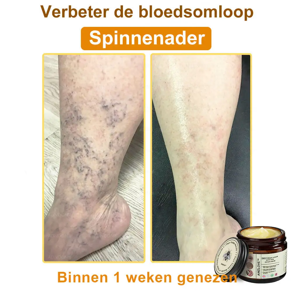 “I’m on my feet all day for work, and it’s caused me to develop spider veins. I hated how they looked and felt like I had no choice but to cover them up with long pants. I decided to try this cream after hearing about the benefits of bee venom for skin issues. It actually worked! My legs felt more relaxed on the first day, and by day six, the veins started to fade. After about a week more, they were totally gone! My legs are smooth again, and even with long hours of standing, there’s no more swelling or discomfort!”