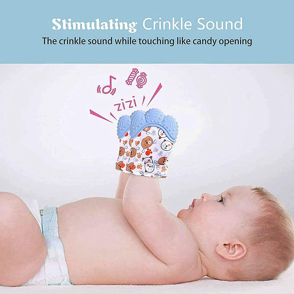It fits comfortably in baby’s hand and allows it to self-soothe sore and irritated gums. The crinkle sound attracts baby’s attention and entertains as a stimulating toy to continue chewing.