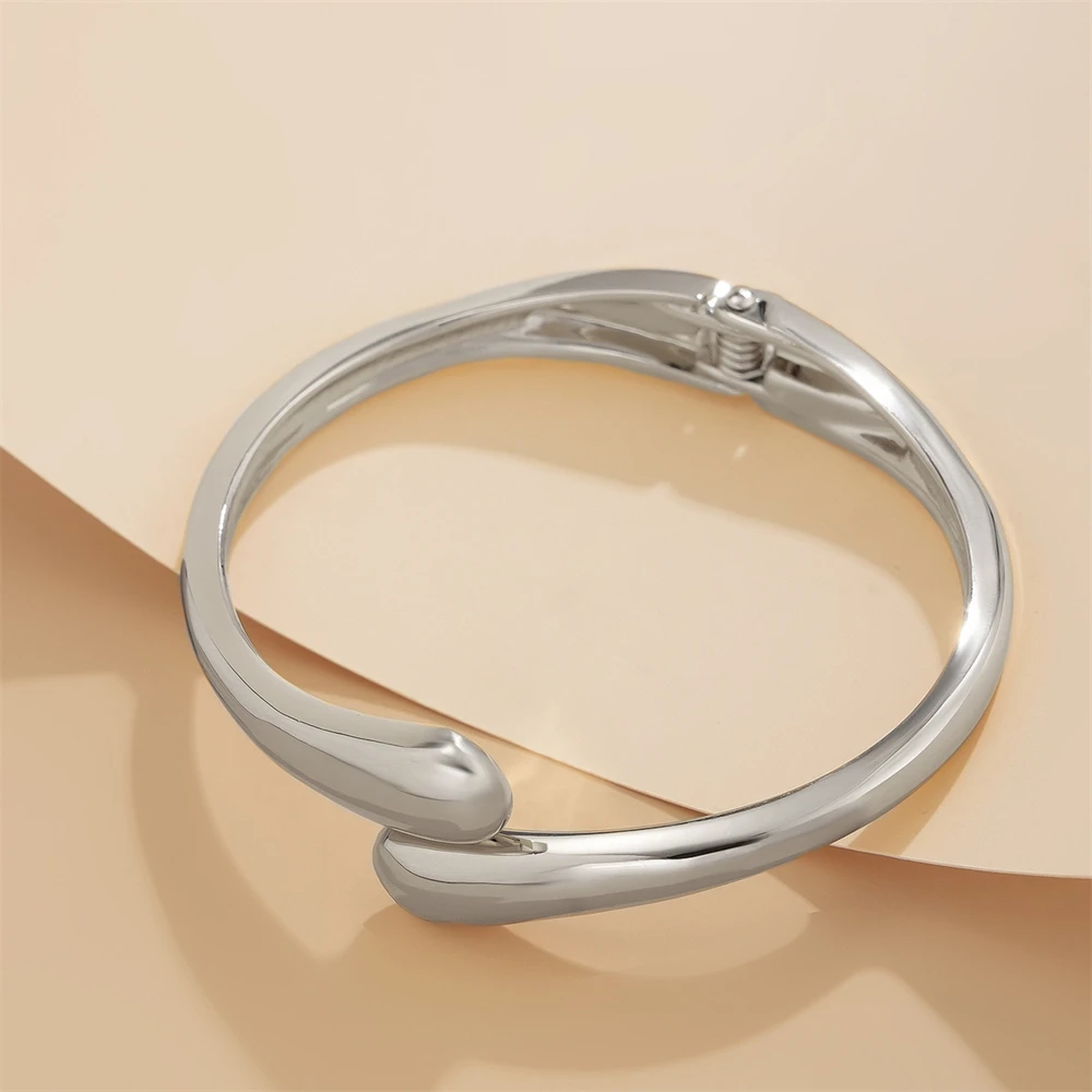 Wide Metal Bangle Ring for Women Gold and Silver Color Chunky Waterdrop Open Wrist Cuff Thick Irregular Twisted Bracelet Jewelry