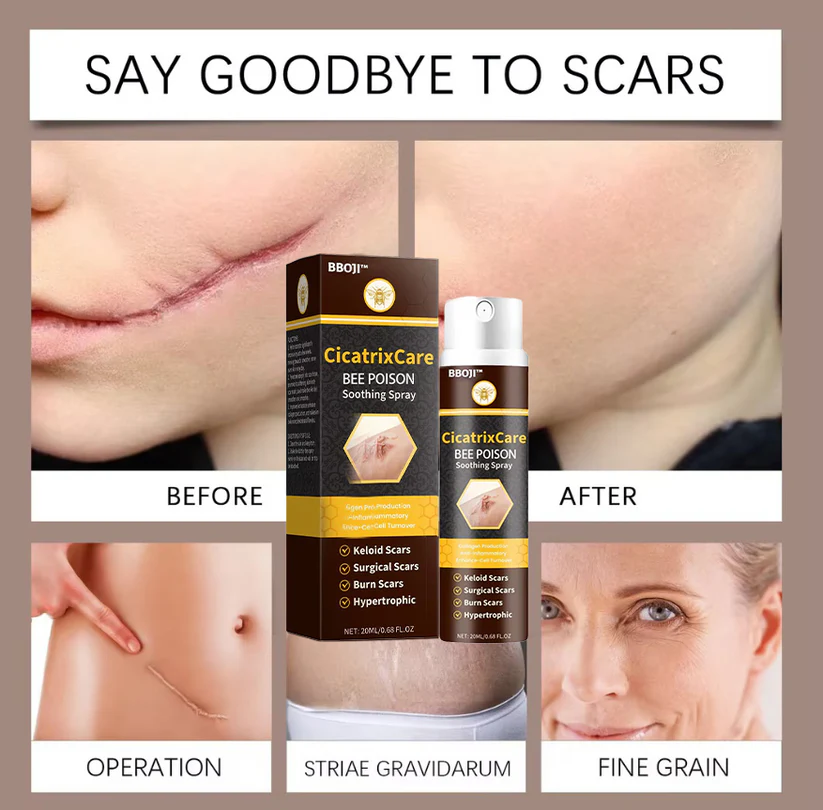 BBOJI™️ CicatrixCare Bee poison Therapy Spray utilizes the powerful properties of Bee poison to effectively reduce various types of scars.