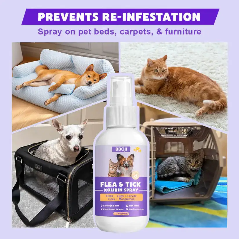 Act Fast! Take advantage of our limited-time 70% discount for the first 50 orders. Protect your pet today with BBOJI™ Flea & Tick Kolirin Spray!