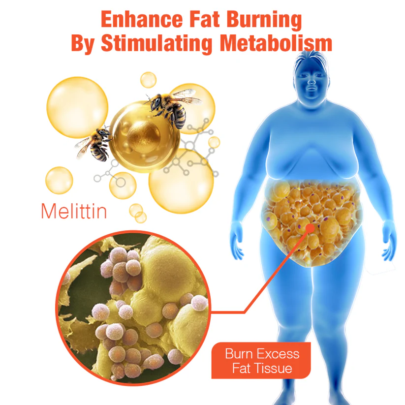 Scientifically proven, melittin, the active compound of bee venom, has demonstrated its remarkable ability to stimulate metabolism. With an elevated metabolic rate, the body becomes adept at expending calories, thereby gradually reducing stored fat reserves. This accelerated fat-burning process contributes to weight loss objectives.