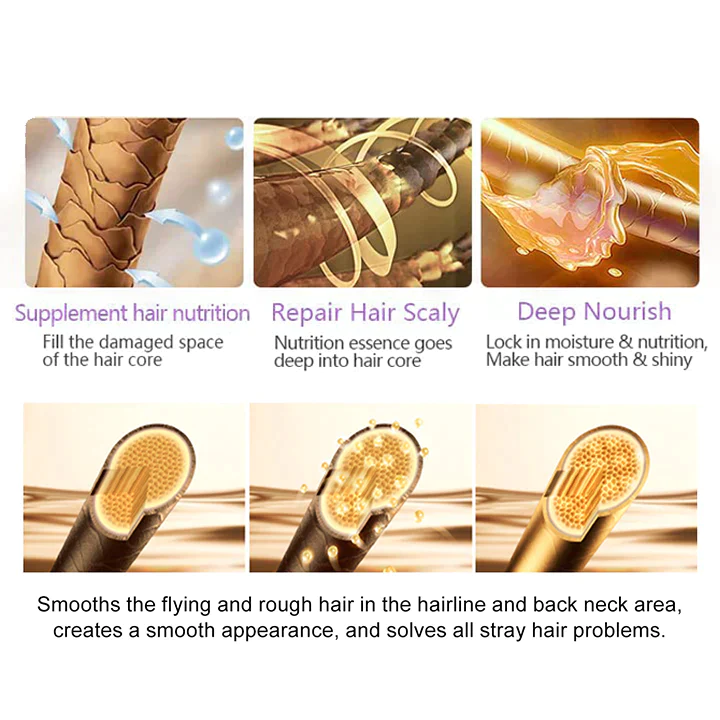 - Repeat 3-4 times along the direction of the hair texture in the area where you need to tidy up the broken or messy hair.