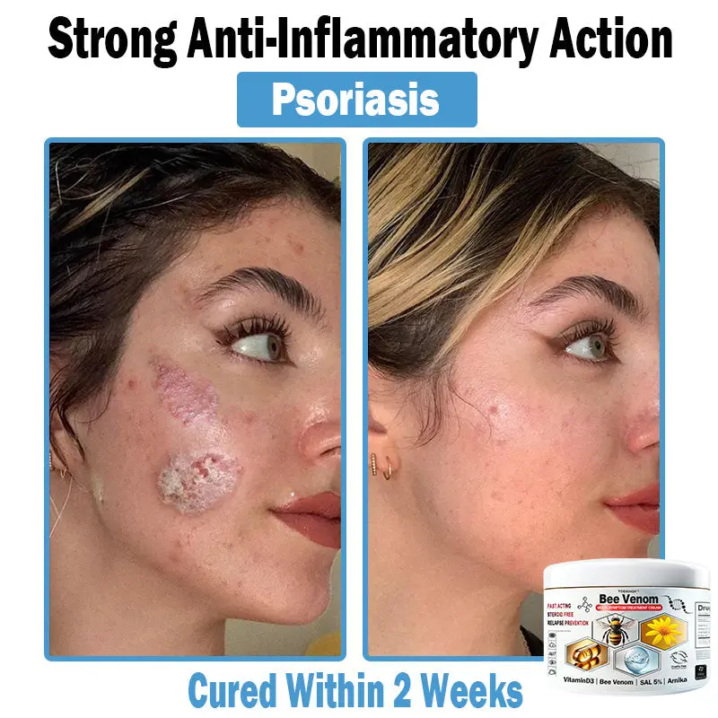 “I’ve been living with psoriasis for a long time, and the redness and flakiness drive me crazy. I’ve tried so many medicated creams and even some ‘natural’ ones, but nothing really helped. Then I saw this bee venom cream at the clinic and decided to give it a try since it claimed to target the root of skin issues. Honestly, I was amazed by the results—after just three days, my face looked less red, the inflammation was way down, and my skin felt so much smoother. Best of all, the results actually last! After two weeks, my skin feels so much better, and I can finally wear makeup without worrying about irritation!” – Kayla Lymburner, Vancouver, Canada