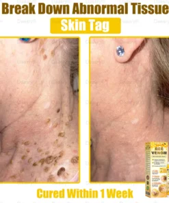 Skin tags: Small growths in friction areas caused by rubbing, hormones, and insulin resistance. Daasry® Bee Venom Skin Restoration Spray’s phospholipase A2 breaks down abnormal tissue for natural removal while peptides boost circulation, reduce inflammation, and accelerate regeneration for smooth, healthy skin.