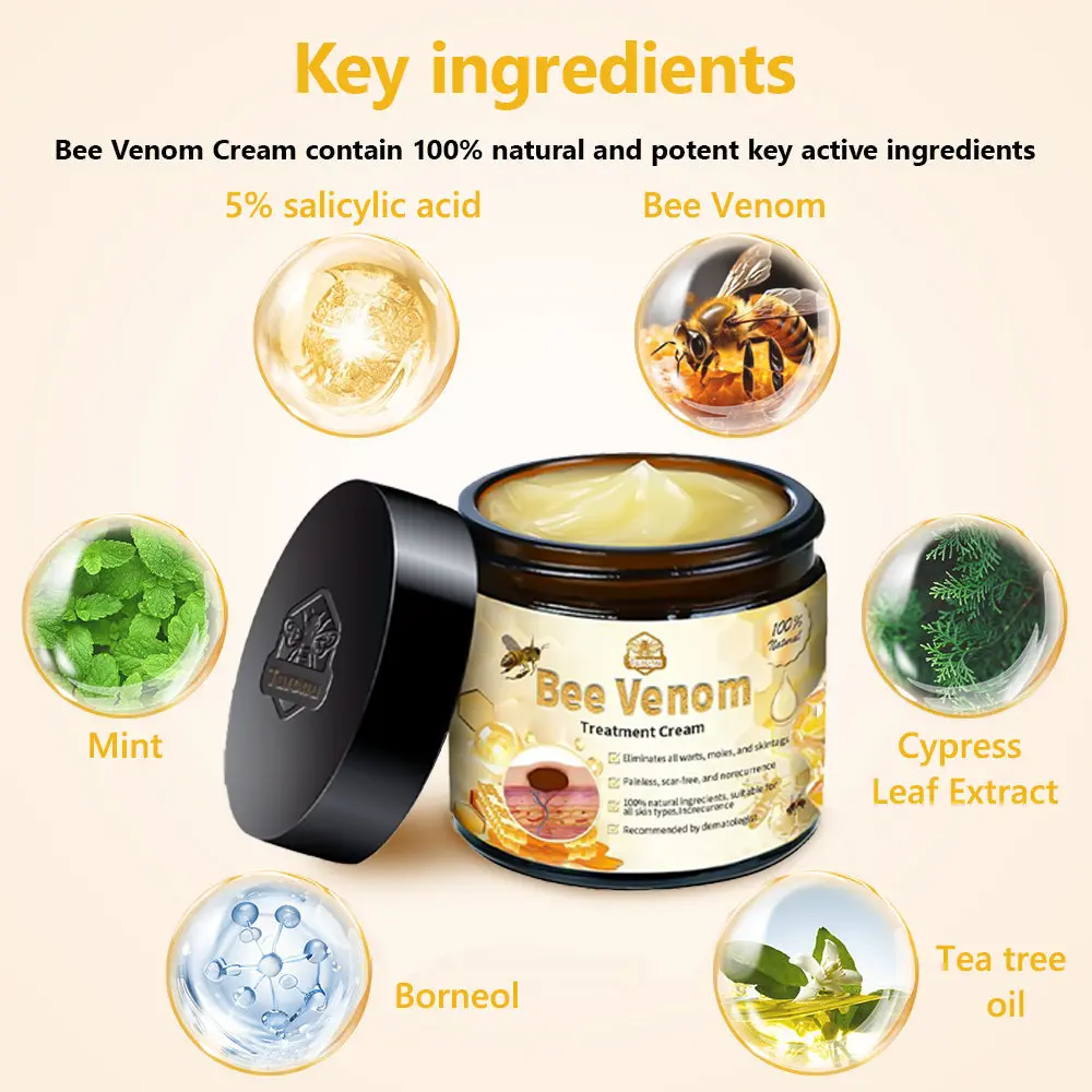 The active biological proteins found in bee venom, called bee venom peptides, were found to be effective in inhibiting the proliferation of keratinocytes within warts, and to rapidly kill the skin cells that have formed within the warts, causing them to gradually discolor, darken, and then fall off within 1 to 2 weeks. And make this the key treatment option for complete wart removal. June 2023 After more than 1 month of intensive research and extraction, I discovered that the bee venom produced by New Zealand bees rapidly fuses with human skin tissue. By activating and facilitating this process, it effectively inhibits the proliferation of keratinocytes within the wart and rapidly kills the skin cells that have already formed within the wart.
