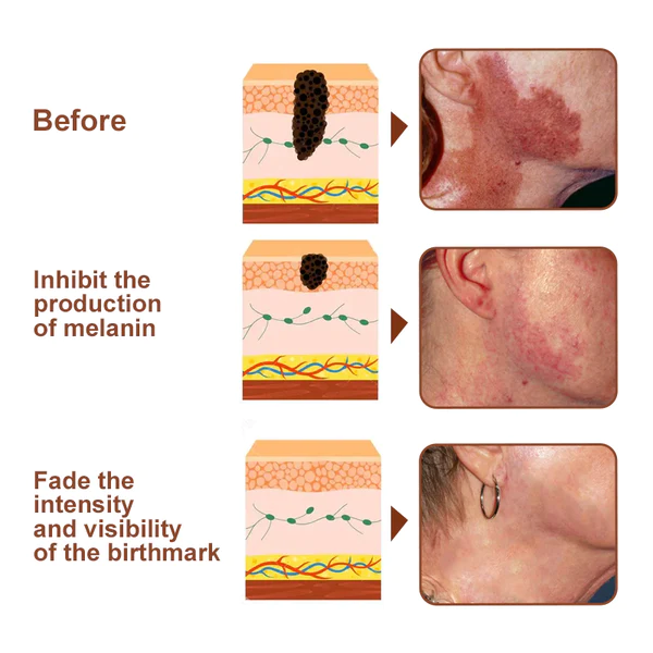 Biancat™ MarkOut Birthmark Removal Serum works by targeting the underlying pigmentation of birthmarks with its powerful ingredients. By breaking down excess pigmentation and inhibiting melanin production, the serum gradually reduces the visibility of birthmarks, promoting a more even complexion. With consistent use, Biancat™ MarkOut Birthmark Removal Serum encourages natural fading and helps you regain confidence in your skin’s appearance.