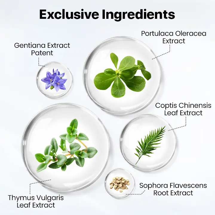 - Gentiana Extract Patent: Rich in anti-allergy ingredients, reducing redness, swelling, and irritation.
