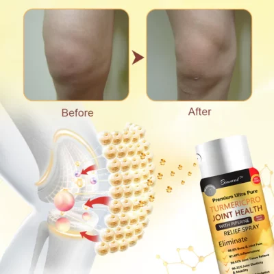 The Biancat™ TurmericPro Joint Health Relief Spray is a potent remedy for joint discomfort that penetrates directly through your skin. Infused with ginger and black pepper extracts, it activates your body’s natural bone repair processes. These powerful ingredients are quickly absorbed, targeting deep into affected joints and tissues to deliver focused anti-inflammatory support.