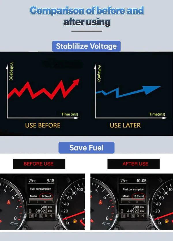 Bikenda® OBD2 High-Performance Fuel Saver connects to the vehicle’s OBD2 interface, providing access to the car’s Engine Control Unit (ECU) data. It collects information about engine performance, fuel supply, and driving patterns. This data is transmitted to the intelligent control unit of Bikenda® Fuel Saver. Based on real-time data obtained from the vehicle’s ECU, the intelligent control unit of Bikenda® Fuel Saver can make real-time adjustments to the engine’s performance and fuel injection. It optimizes the air-fuel ratio, ignition timing, and fuel injection to ensure that the fuel is burned more efficiently, reducing waste.