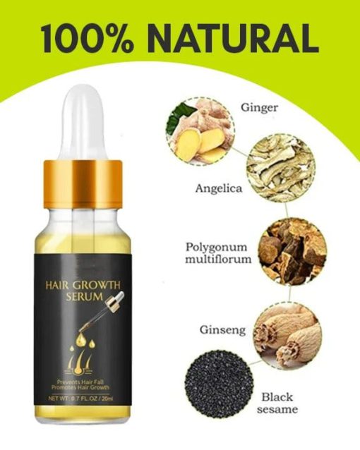 Formulated with herbal ingredients such as Polygonum Multiflorum, Angelica, ginseng, and He Shou Wu, it revitalizes the scalp and waken hair follicles for triggering rapid regrowth.