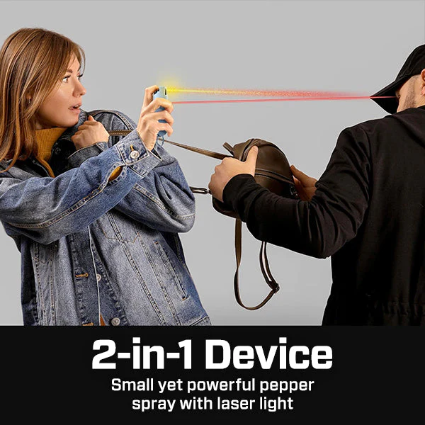 This self-defense spray is a good size, it fits well in my hand. The laser light is easy to use, and it makes me more confident if I ever need to use it. I like that it can go on my key chain. I am very pleased with this product