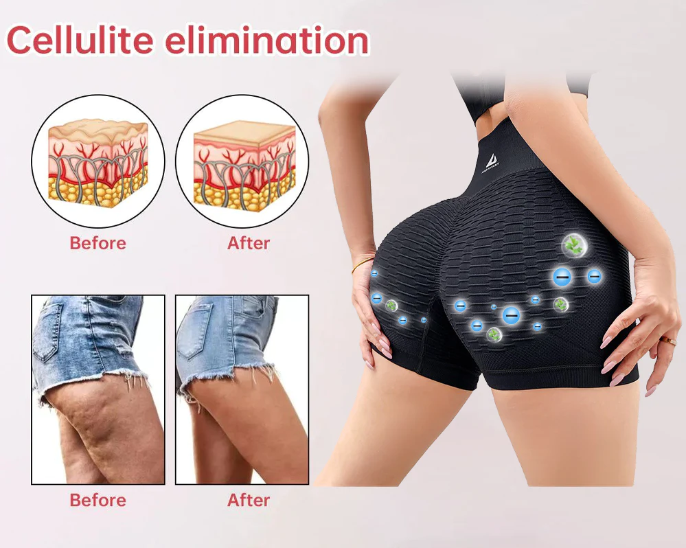 It stimulates over 800 reflex points in the abdomen. BLUESHOT™ Ion Shaping Shorts generate energy without the need for any other energy source (e.g. electricity). These tourmaline yoga shorts are based on ion therapy, far-infrared therapy and absinthe therapy, providing users with a multi-dimensional massage and stimulation. It helps to effectively stimulate blood and lymphatic circulation in the body, relieves lymphedema and inflammation, and reduces fluid and cellulite accumulation in the body.