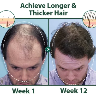 I couldn’t believe how nice my hair has been coming in since using this. My hair is growing thicker and the bald spots have nicely filled in. Very happy with the product! Only took around 3 months to save my hair!