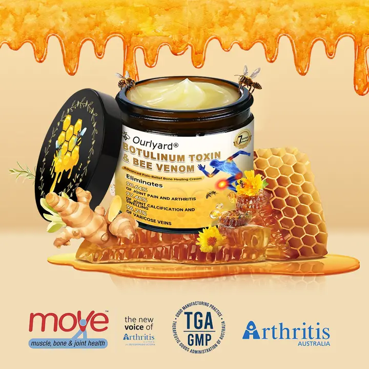 Ourlyardยฎ Botox & Bee Venom Pain Relief & Bone Healing Dual Action Soothing Cream contains natural bee venom, which is highly effective in enhancing joint flexibility. Its active compound, โbee venom peptide,โ penetrates deeply into the joints to relieve stiffness and discomfort caused by inflammation, aiding in the restoration of joint mobility.Over time, the anti-inflammatory properties of bee venom stimulate synovial fluid production, improving joint lubrication, reducing friction, and delivering noticeable improvements in joint flexibility within just 7 days. This advanced cream offers a reliable and innovative solution for joint health and mobility.