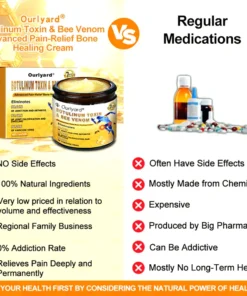 Ourlyardยฎ Botox & Bee Venom Pain Relief & Bone Healing Dual Action Soothing Cream is widely acclaimed for its ability to address a diverse range of orthopedic conditions effectively, offering a trusted solution for improved joint health and relief from debilitating symptoms.