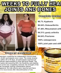 This product is certified and recommended by the American Orthopaedic Association (AOA) meeting their high standards to effectively relieve pain and promote bone health. Approved by orthopedic doctors, it relieves pain within 5 minutes, restores joint mobility in 7 days, and significantly improves arthritis symptoms in 4 weeks. Choose our Botulinum Toxin & Bee Venom Pain Relief Bone Healing Cream and enjoy reliable results and a pleasant experience with confidence.