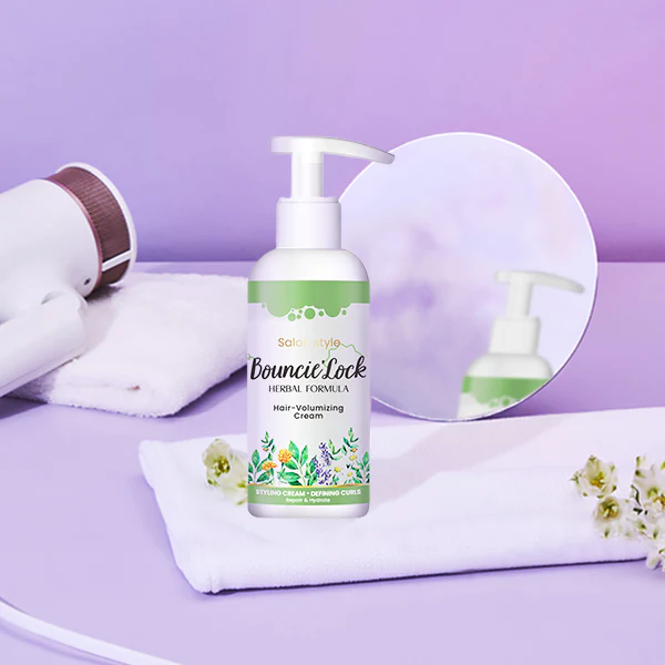 Bouncie’Lock Hair-Volumizing Cream that boosts hydration, minimizes frizz, and provides soft, flexible control for waves and curl.