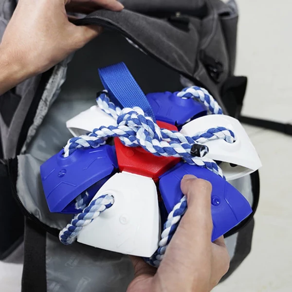 - Squashable ball that becomes a frisbee