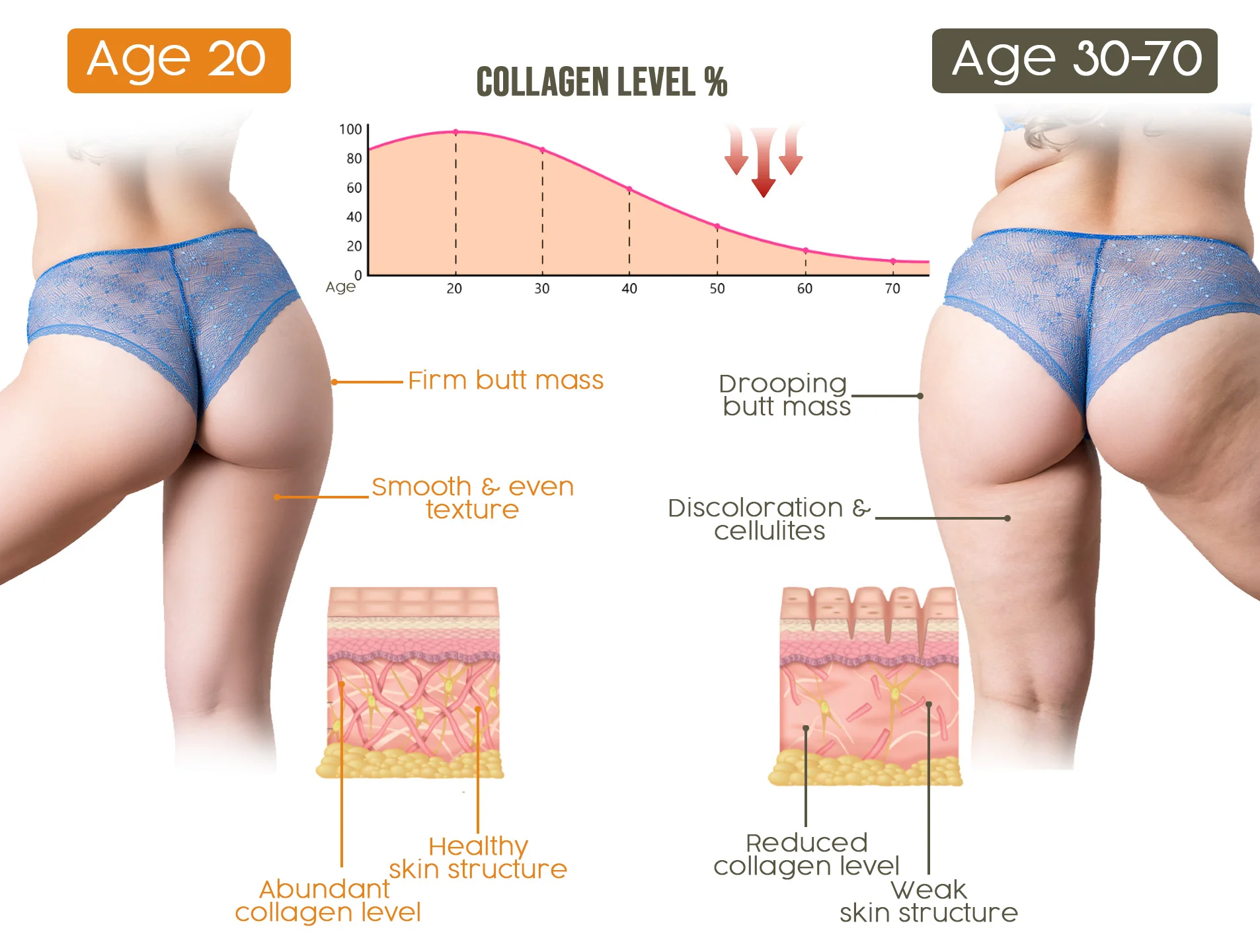 Skin structure and the accumulation of fat mass will affect the appearance of the buttock in a prominent way. As you age, your body will lose their ability to produce as much collagen to support the skin structure, making it more susceptible to the emergence of wrinkles and cellulites. Together with higher fat accumulation due to slower metabolism, it would be significantly harder to achieve a lifted, smooth look for the buttocks. Luckily, the BSWELL® Advanced Firming & Wrinkle-Reducing Cream might just be able to remedy that.