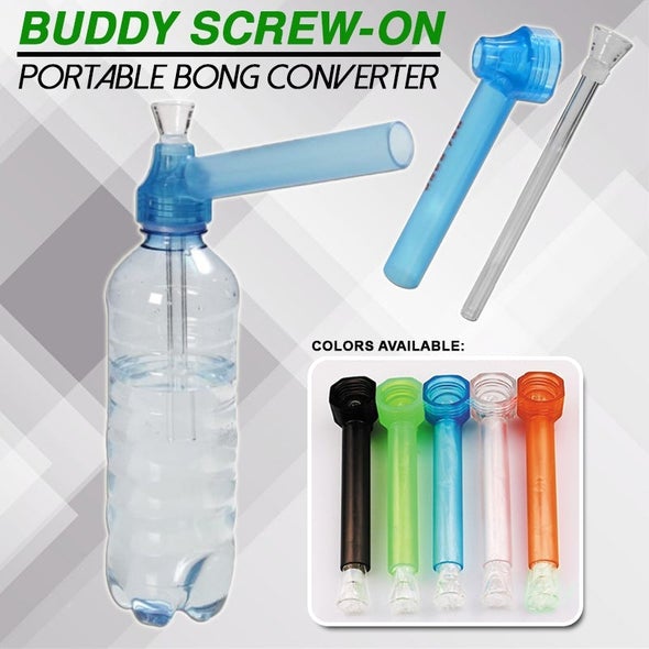 This simple and ingenious, Buddy Screw-On Portable Bong Converter is the perfect smoking gear to take with you to a festival or party. The Buddy Screw-On Portable Bong Converter is a new innovative way to easily turn any bottle into a portable water pipe.