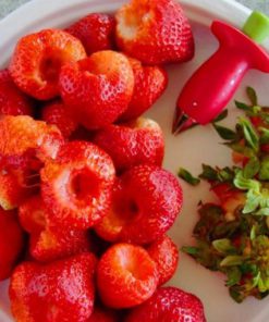 It is super time saving and it takes you to cut and de-stem strawberries. The huller is washable and dishwasher safe.