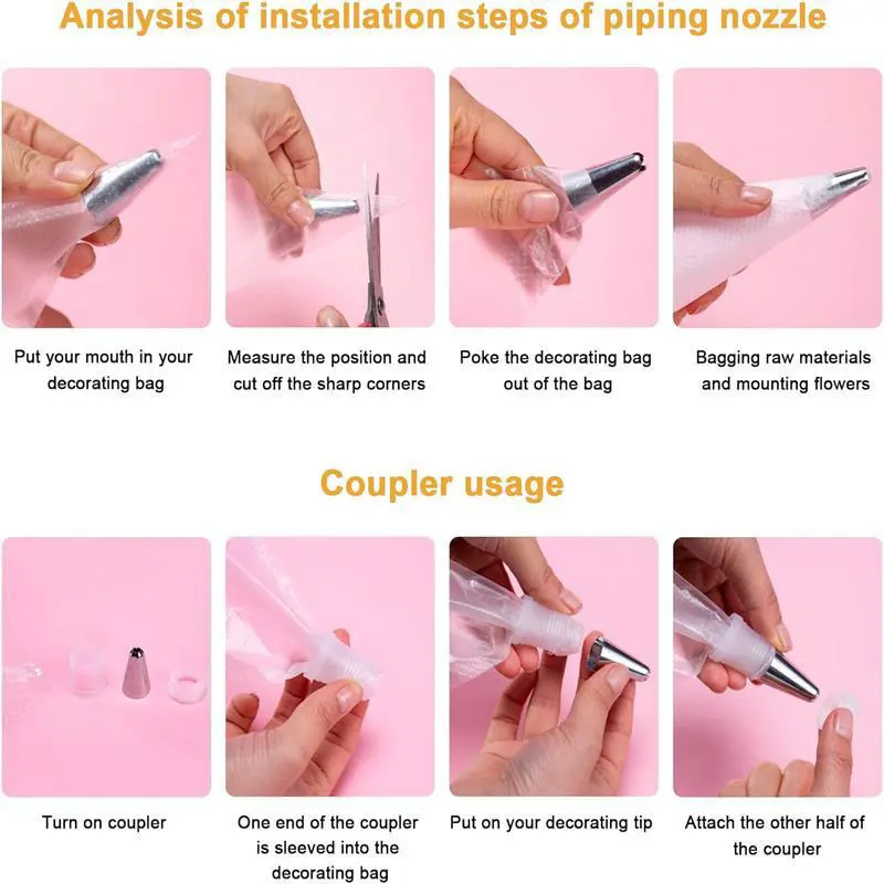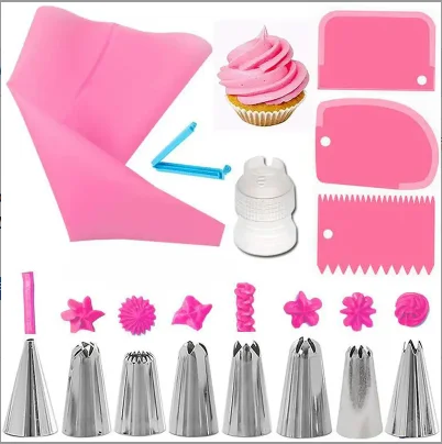 1Set cake cream piping set cake baking cream decoration utensils sealing clip stainless steel mouth
