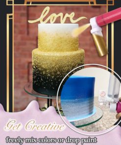 You can freely mix colors or drop paint and edible glitters into the paint cup – then just get spraying!