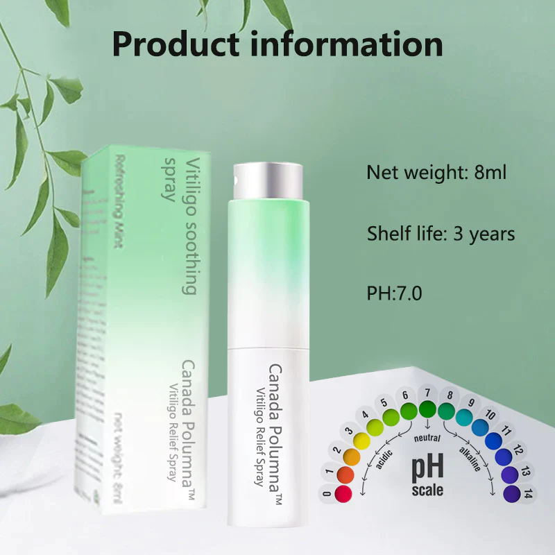 Canada Polumna™ Vitiligo Relief Spray helps Improve the physiological balance of melanocytes and keratinocytes in the vitiligo epidermis. Regulates skin pigmentation with its natural formula that can regulate pigmentation, repair vitiligo, and promote melanin recovery.