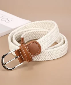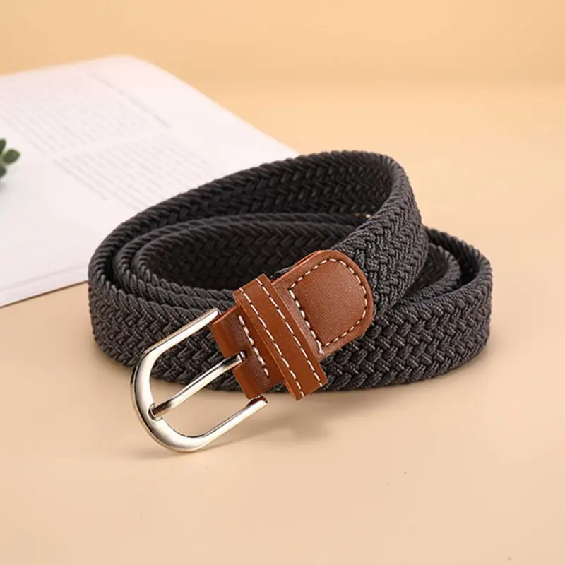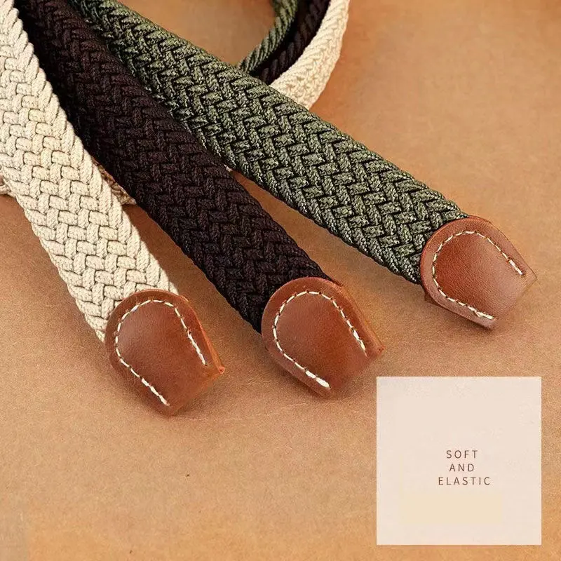 Versatile jeans belt for women, no need for perforated canvas belt, women’s woven elastic student decorative belt