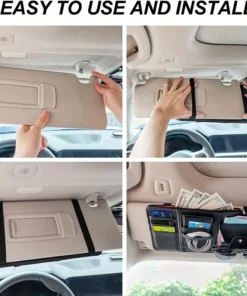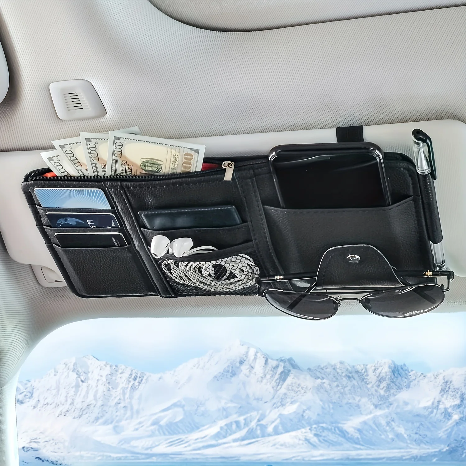 1pc Car Sun Visor Organizer Car Glasses Clip Storage Pocket Sunglasses Holder Zipper Pocket For Car Truck Suv Auto