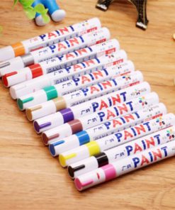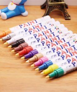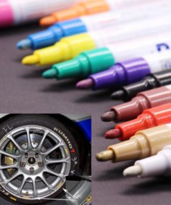 Clean the tires with soapy water and scrub the tire on the area you plan to paint. Shake the pen with the cap on for 30 seconds. Prime the pen by pushing it down multiple times until the paint starts to flow. Start writing.