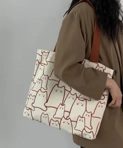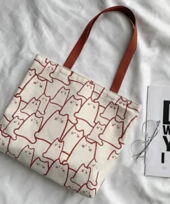 Cute Cat Handbags Shoulder Fashion Canvas Casual Shopping Girls Women Graphic Tote BagJapanese Cartoon Small Shoulder