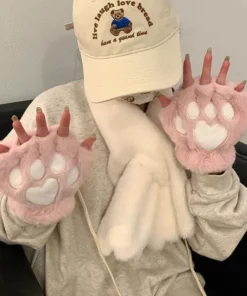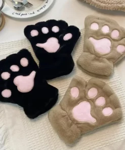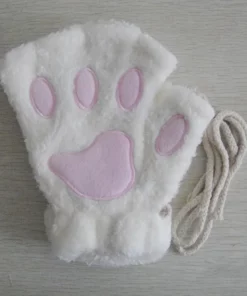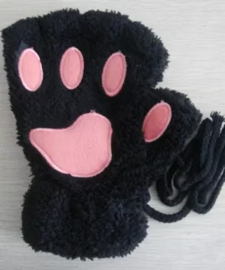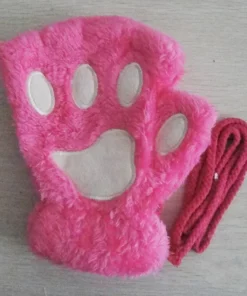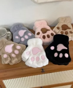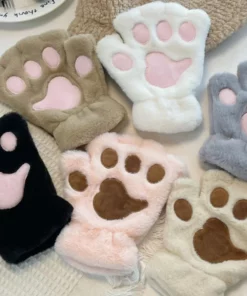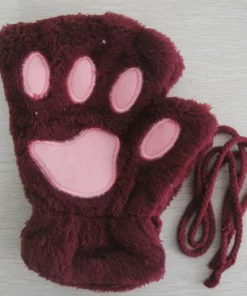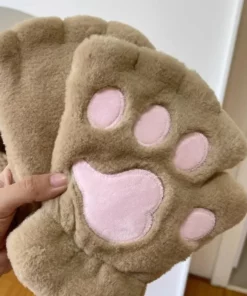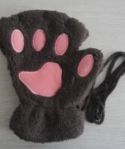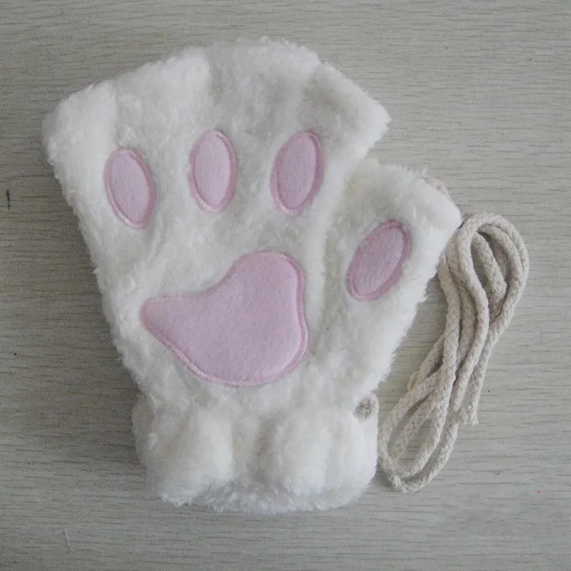 Lovely Plush Cat Paw Gloves Plush Mittens Warm Soft Plush Short Fingerless Fluffy Bear Gloves Costume Half Finger Gloves