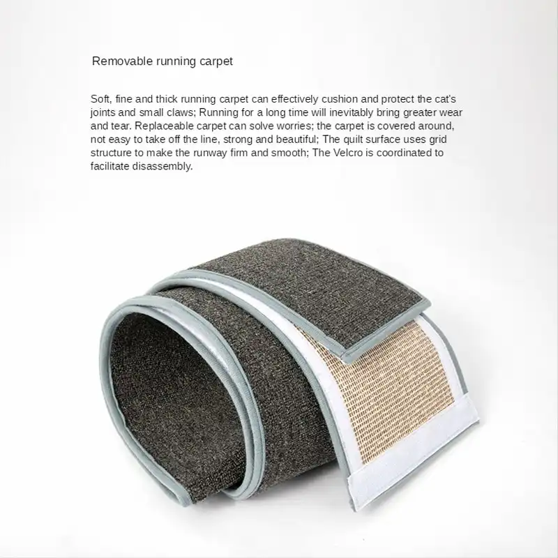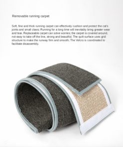 A soft, dense and thick running carpet can effectively cushion and care for the cat’s joints and small paws; long-term running will inevitably bring about greater wear and tear, and replaceable carpets can solve the worries of the future; the carpet is wrapped around, not easy to fall off, and is strong and beautiful. The quilt surface uses a grid structure to make the runway firm and flat.