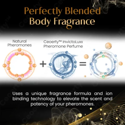 Ceoerty™ InvictoLuxx Pheromone Perfume uses a unique formula of fragrance molecules and ion-binding technology to intensify your natural scent, enhancing the power of your pheromones. The result? A captivating aroma that entices, excites, and creates an undeniable pull between you and others.