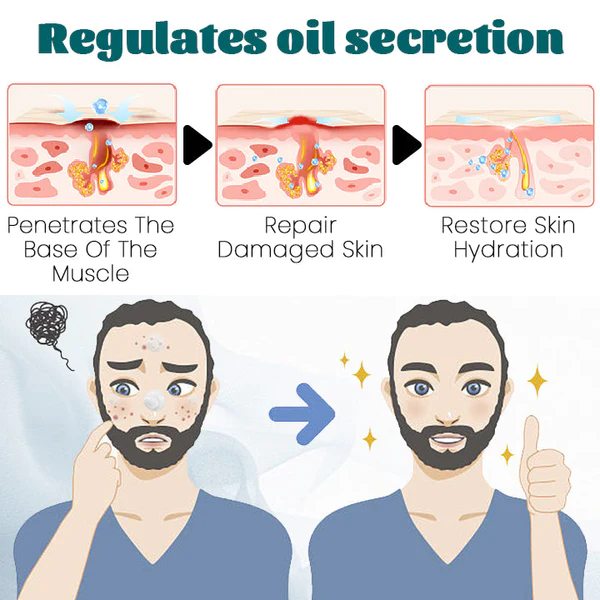 Ceoerty™ Men’s AcneFree Hydra Cream is meticulously designed with antibacterial and anti-inflammatory properties. Its antibacterial components penetrate deep into the pores, eliminating bacteria hidden beneath the skin’s surface, effectively addressing the root causes of acne. Unlike standard skincare products, it not only cleanses the skin but also provides an antibacterial barrier that protects your skin from bacterial invasion for extended periods. Meanwhile, the anti-inflammatory ingredients swiftly alleviate skin inflammation, reduce redness, and offer immediate soothing effects.