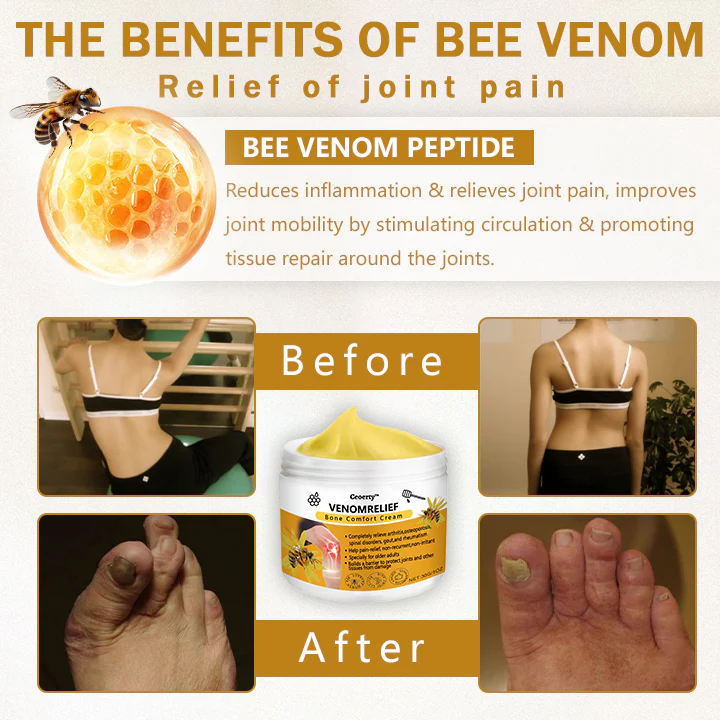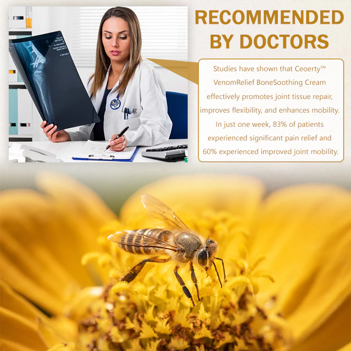 Infused with potent bee venom, Ceoerty™ VenomRelief BoneSoothing Cream penetrates the skin quickly, reaching the affected area to relieve pain, reduce swelling, and combat inflammation.